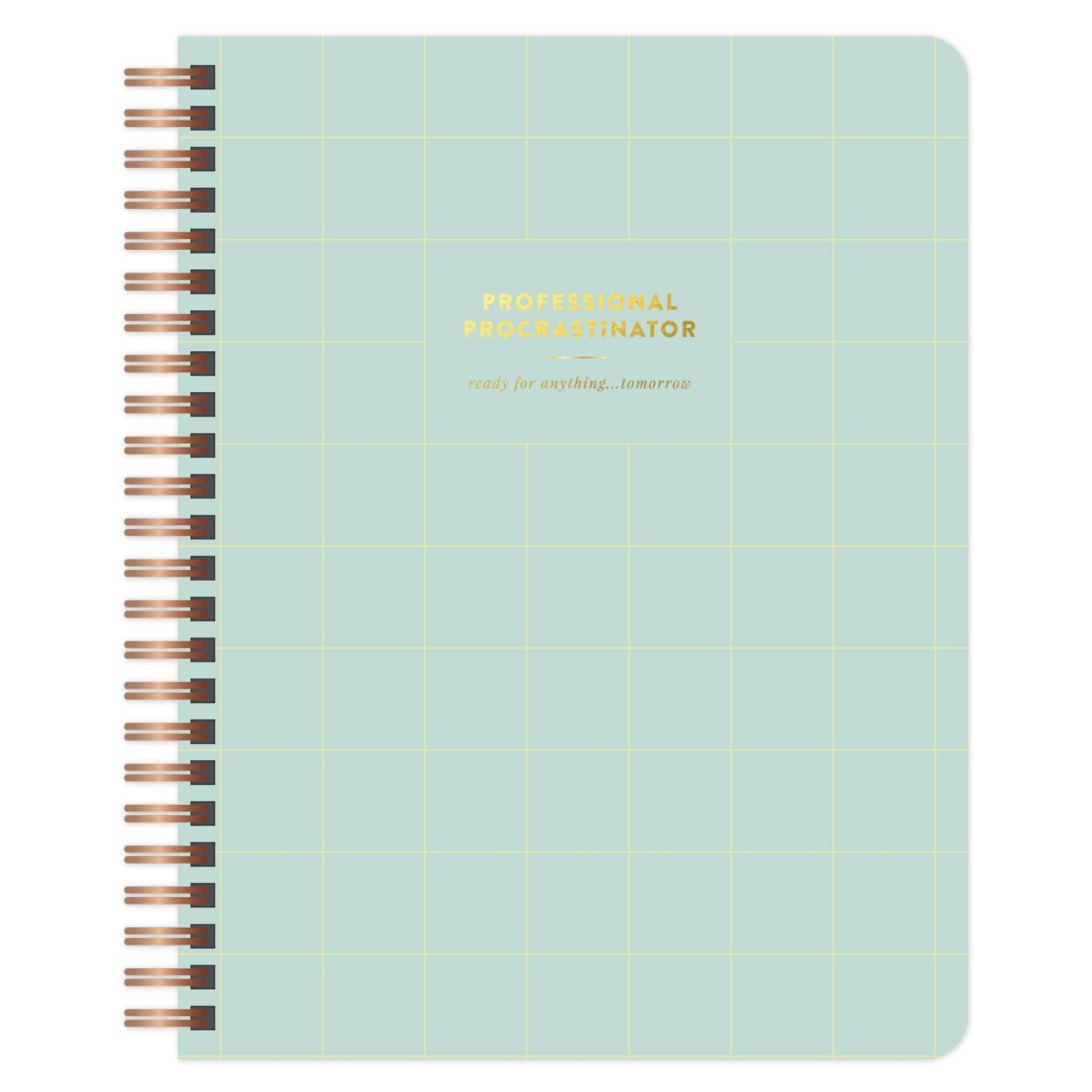 The Professional Procrastinator Spiral Notebook is the perfect stationery companion for those who do their best work at the last minute. With 80 lined pages, a sturdy spiral binding, and a double-sided pocket for stashing to-dos (or avoiding them), this 7x9” notebook is equal parts functional and funny. The aqua blue cover features gold foil lettering that adds a polished touch—even if your plans are a little chaotic. Ideal for students, planners, list-makers, and anyone who thrives on a deadline. Makes a great gift for coworkers, teachers, or your favorite procrastinating pal.